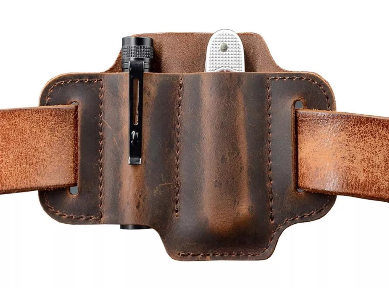 Edc leather sheath for leatherman multitools, belt sheath pocket knife organizer tactical flashlights tools