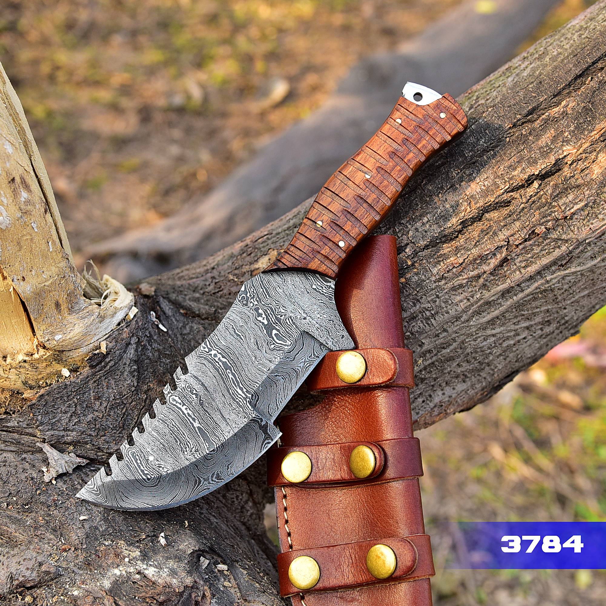 CUSTOM MADE HAND FORGED DAMASCUS STEEL KNIFE Tracker Multi purpose knife Outdoor knife Hunting camping outdoor bush craft Survival WITH GENUINE LEATHER SHEATH This superb design knifes...
