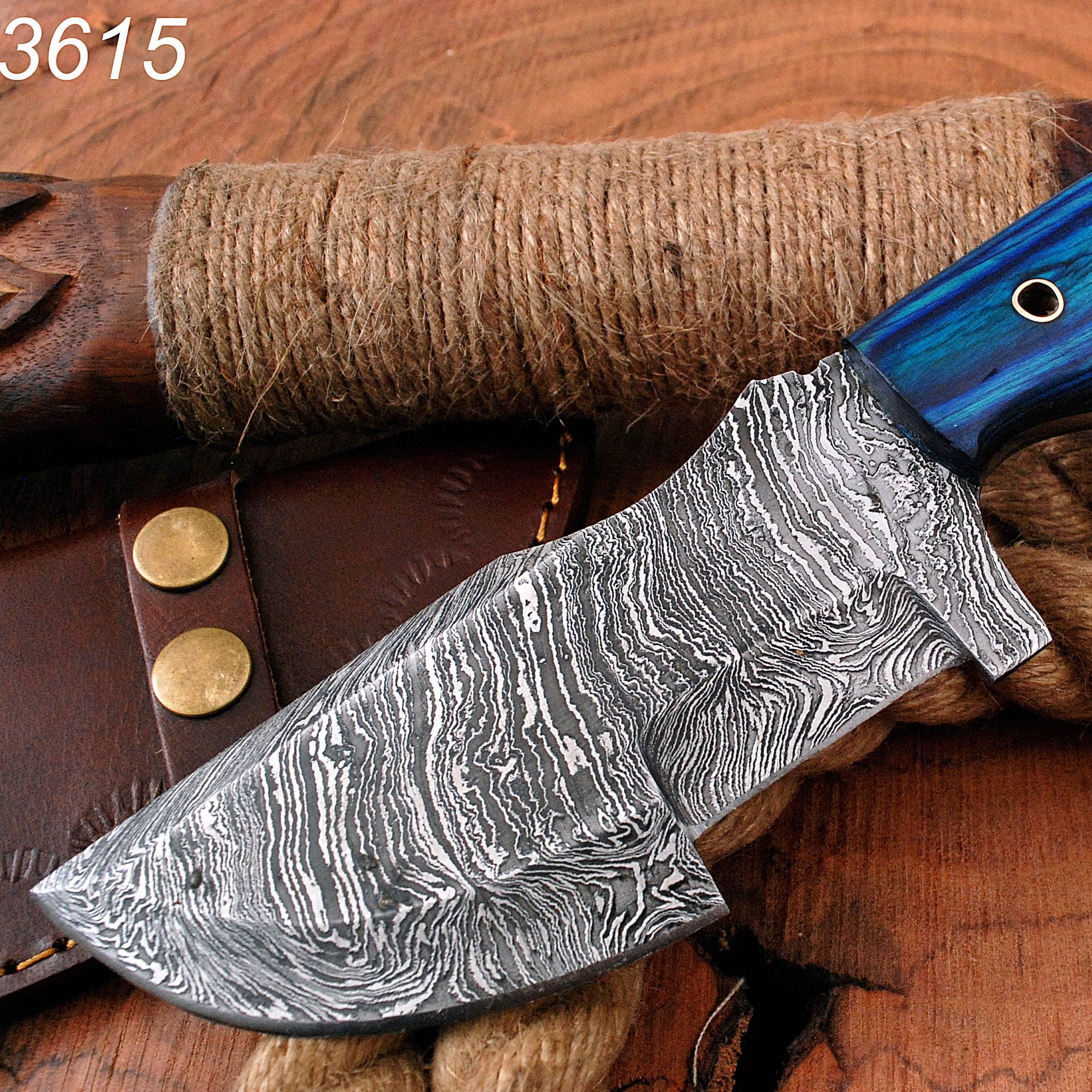 CUSTOM HAND FORGED DAMASCUS STEEL BLADE SKINNING KNIFE ALL OUR KNIVES ARE HAND MADE, DURABLE AND UNIQUE This knife model has a Brass Guard showcasing amazing file...