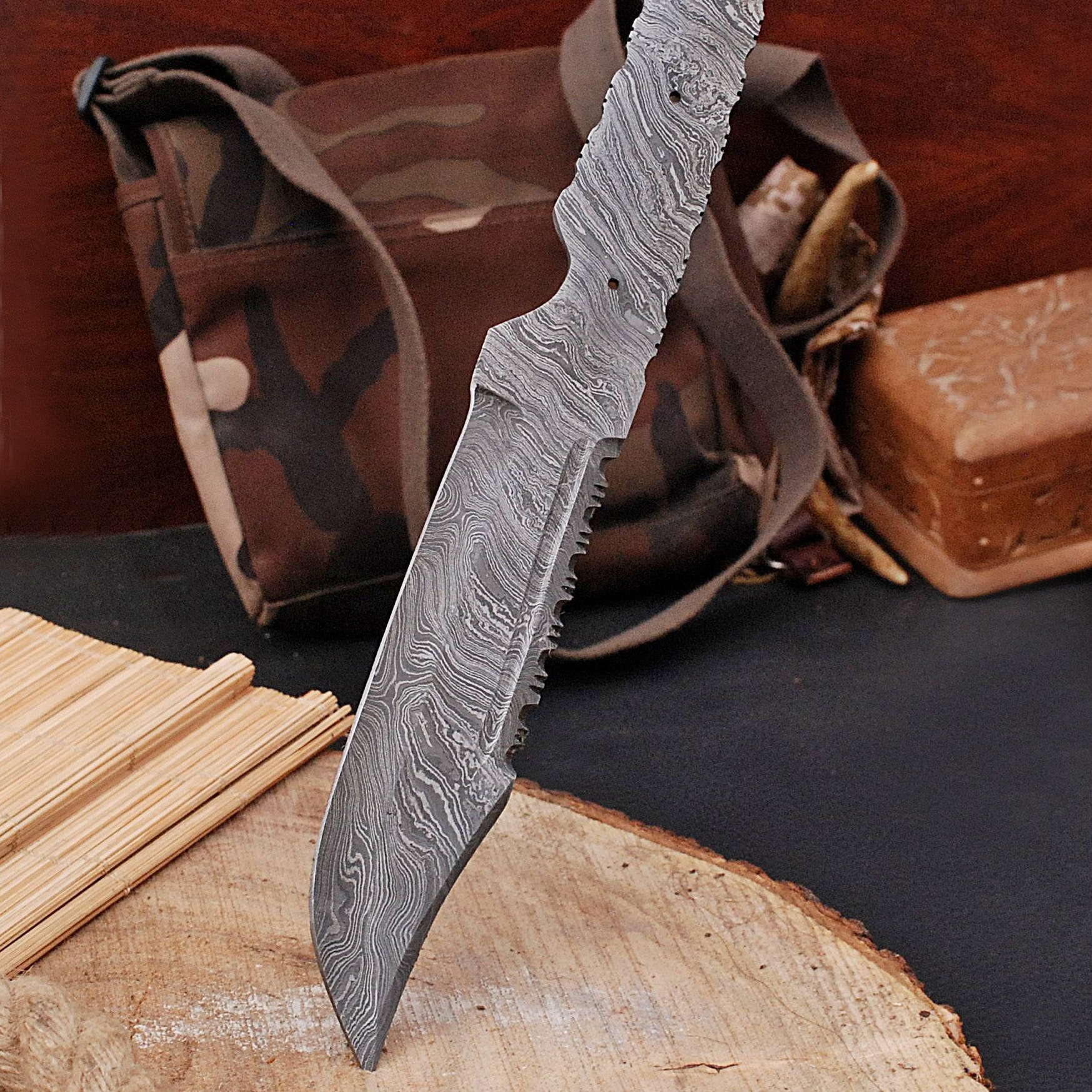 CUSTOM MADE HAND FORGED DAMASCUS STEEL BLANK BLADE Multi purpose knife Outdoor knife Tracker knife Tactical knife Hunting camping outdoor This superb design knifes is hand forged. Blade...