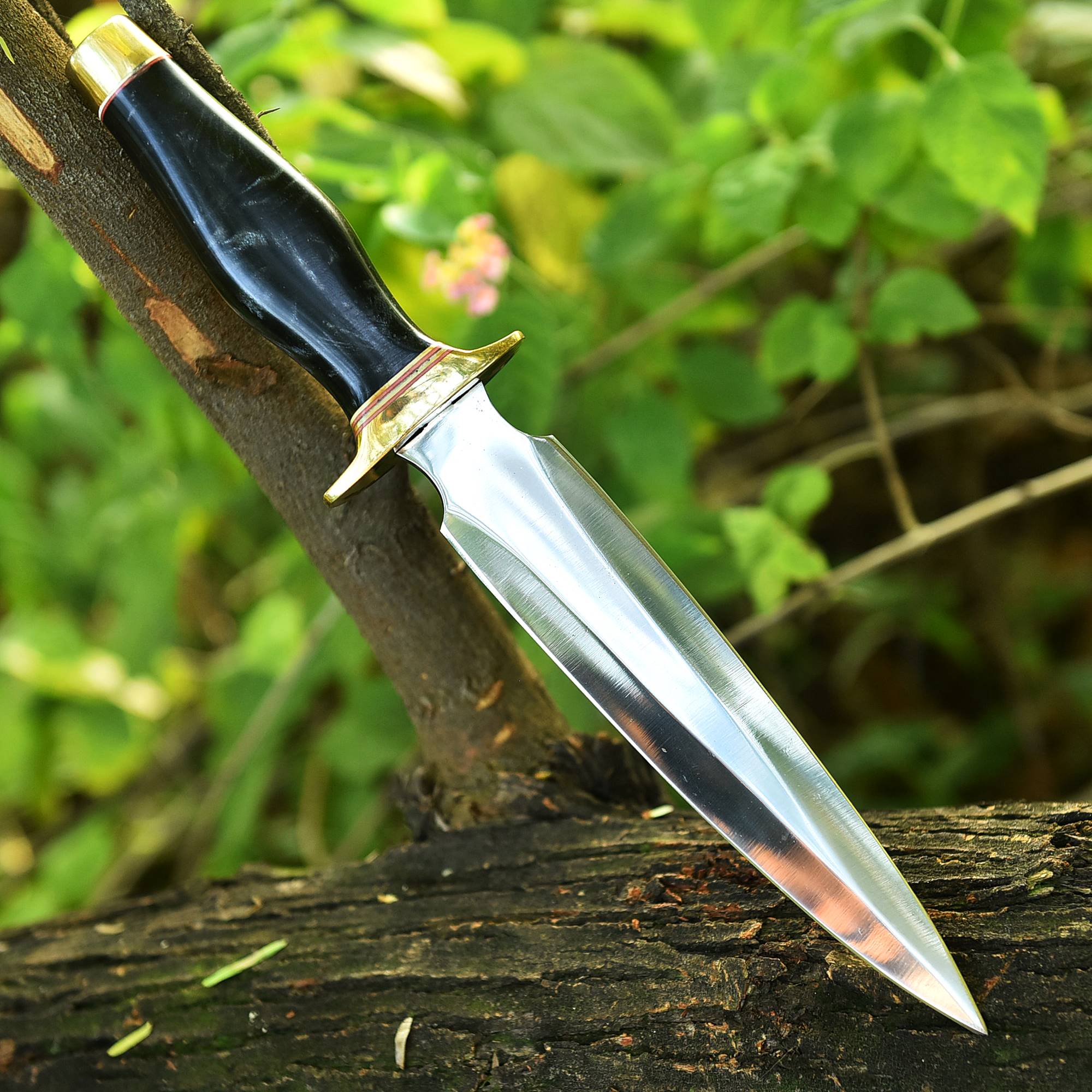 Double-Edged V42 Military Dagger Knife with Sheath World War 2 Knife Overall Length : 12' inch BuLL Horn & Brass Handle Historically accurate weapon of the Devil's...
