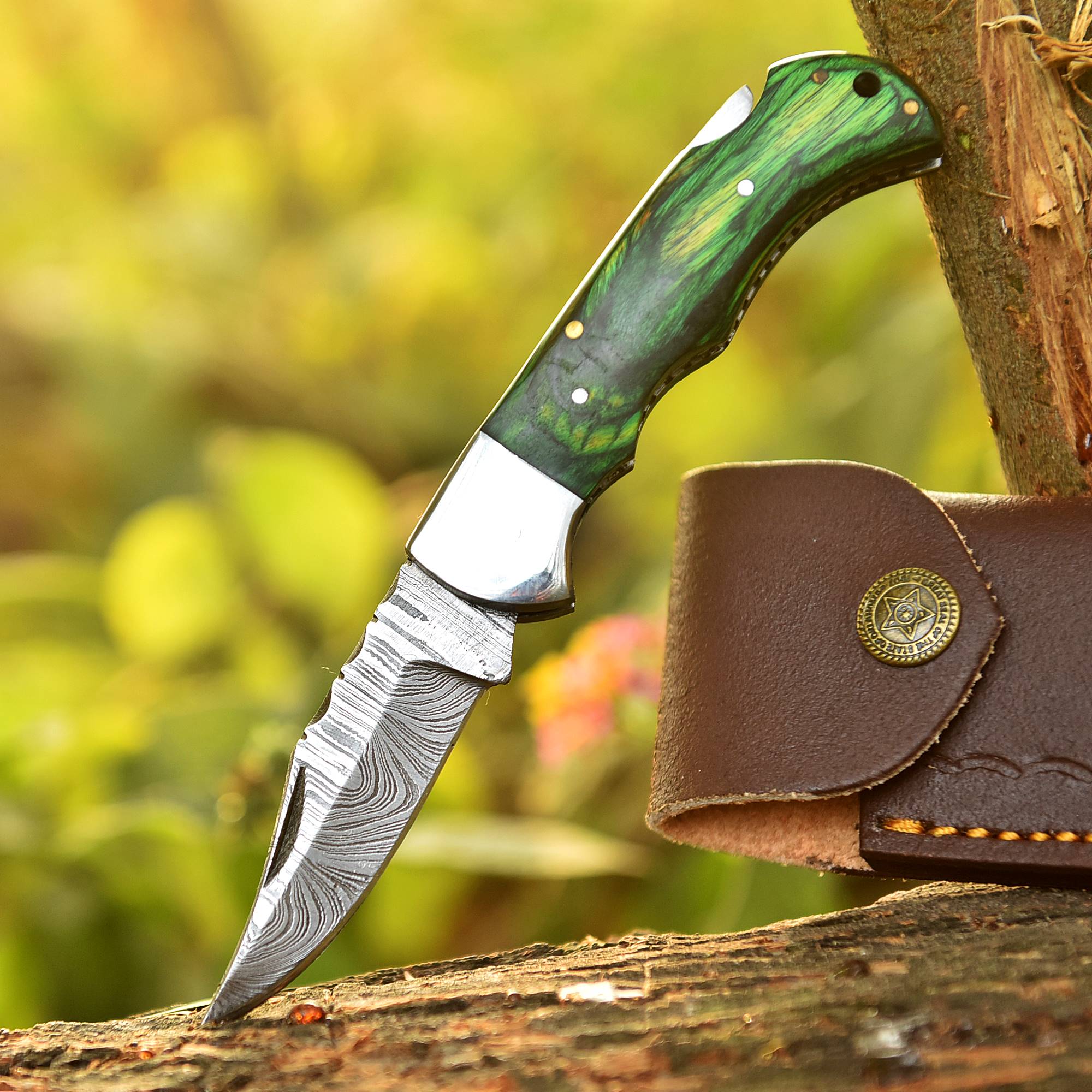 Handmade Damascus Steel Folding Pocket Knife Wood Double Brass Bolster Handle Premium Handmade Craftsmanship This handmade Damascus steel folding pocket knife combines traditional craftsmanship with modern...