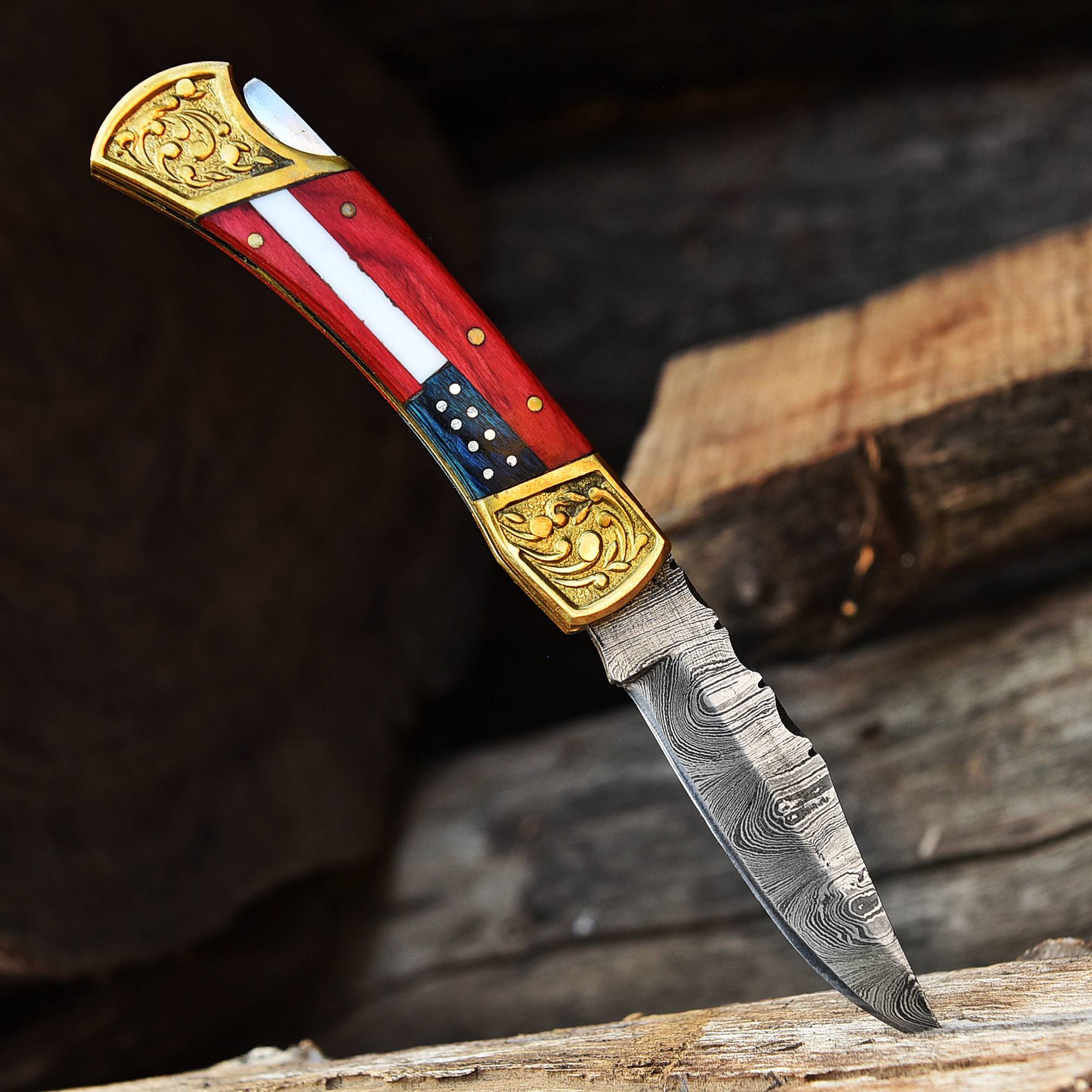 Damascus folding blade knife - 7" handmade gift knife - best pocket knife