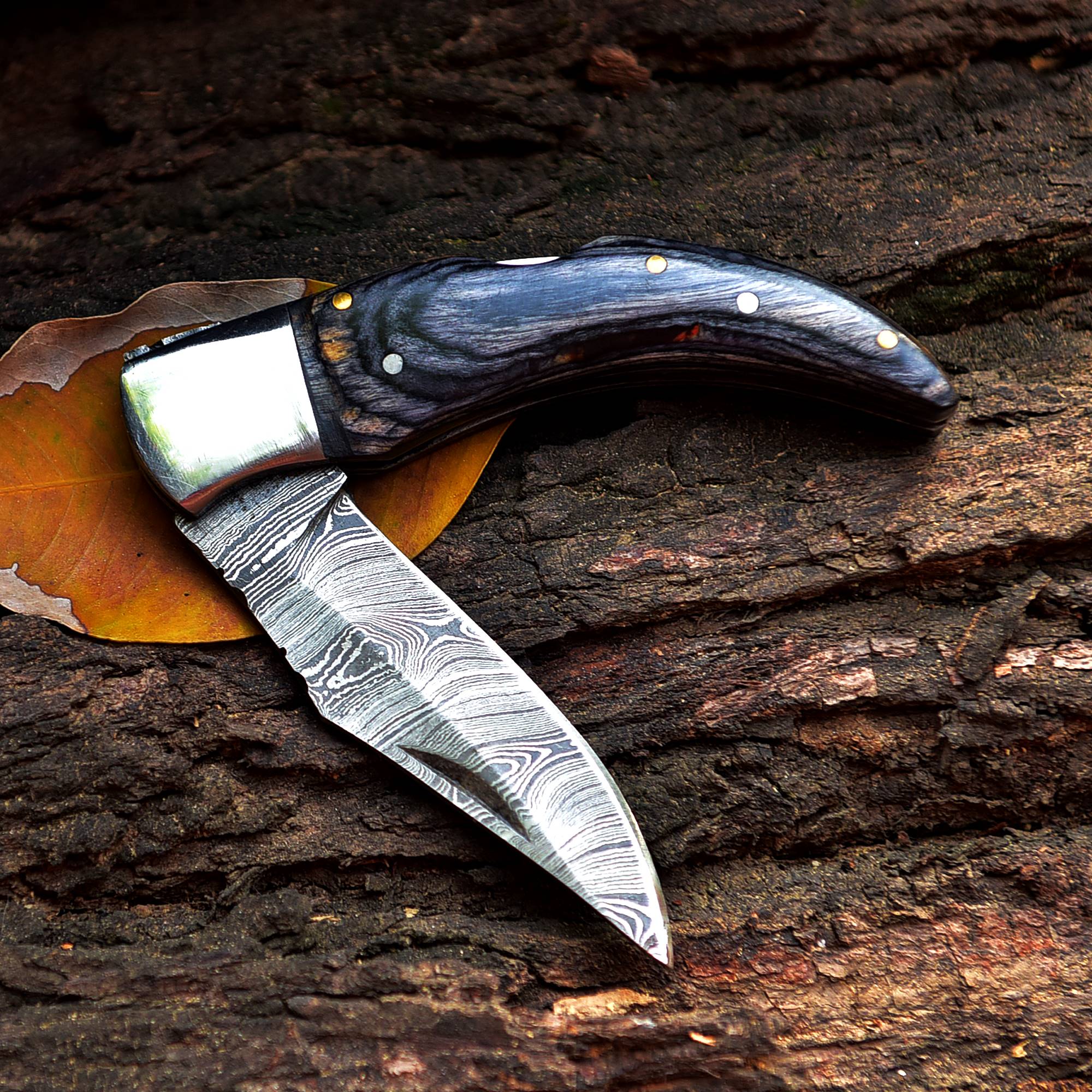 Handmade damascus pocket knife - 6.5" folding blade knife pakkawood handle - camping knife