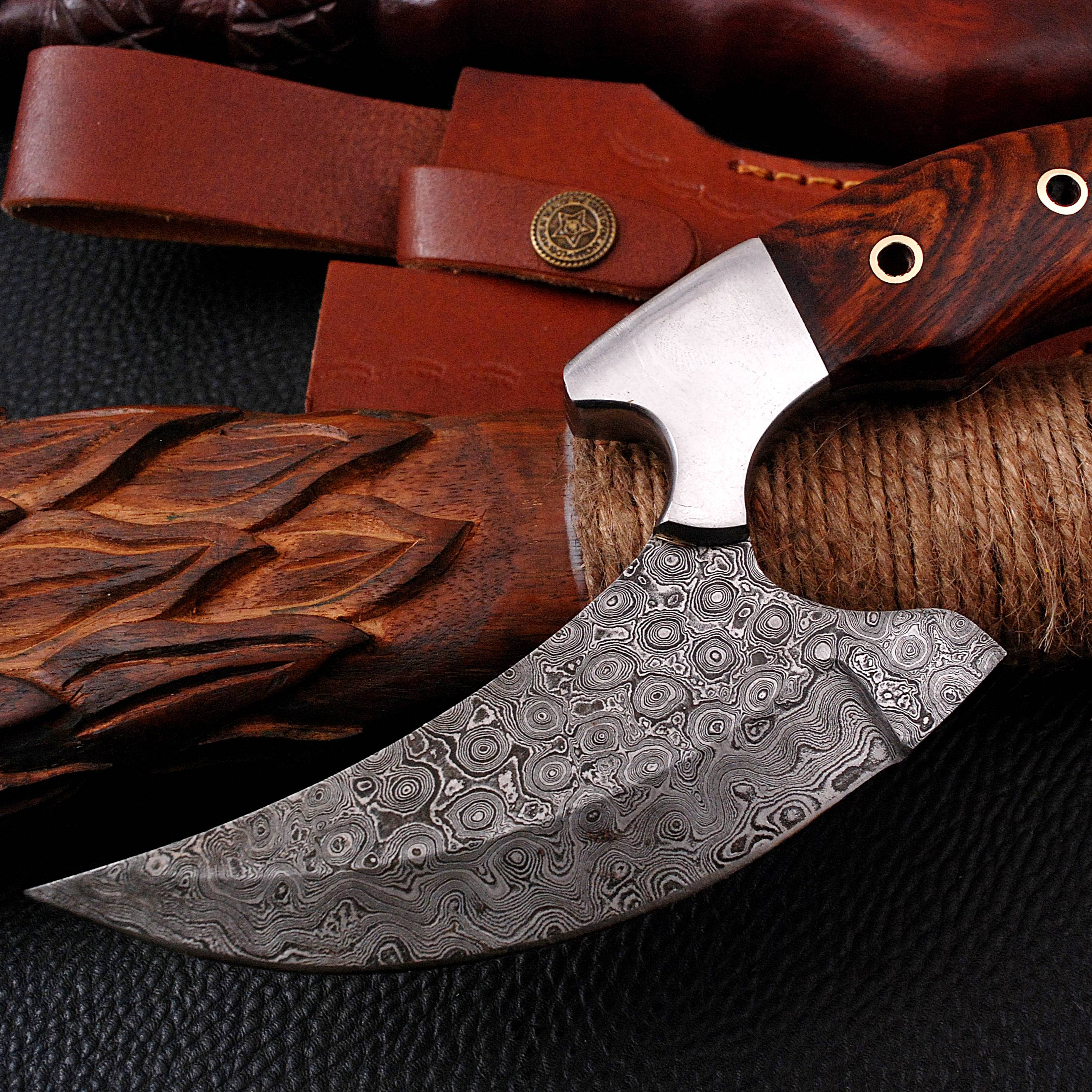 Handmade damascus steel outdoor hunting skinning knife wood handle with sheath