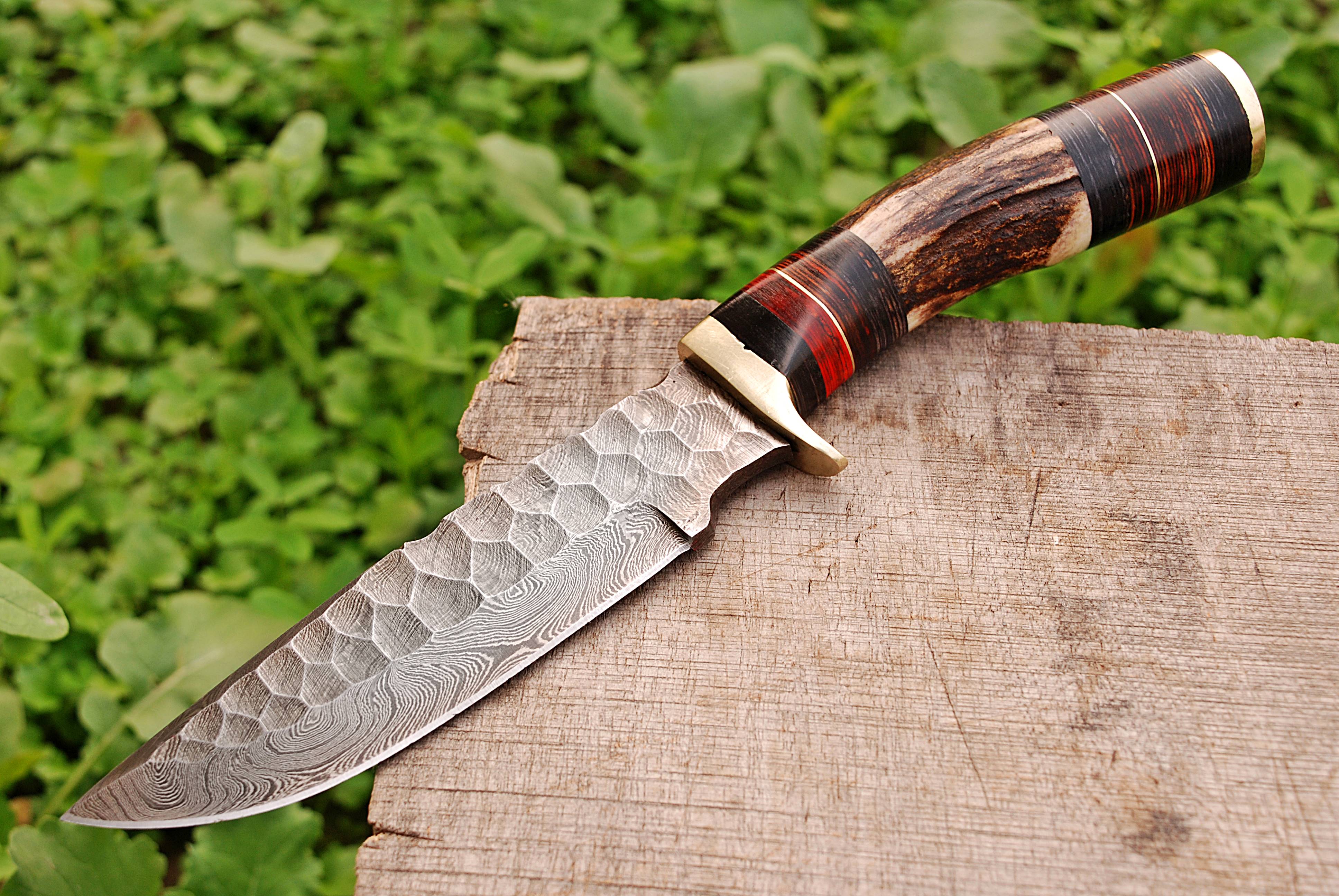 8" handcrafted damascus steel outdoor knife with stag antler handle
