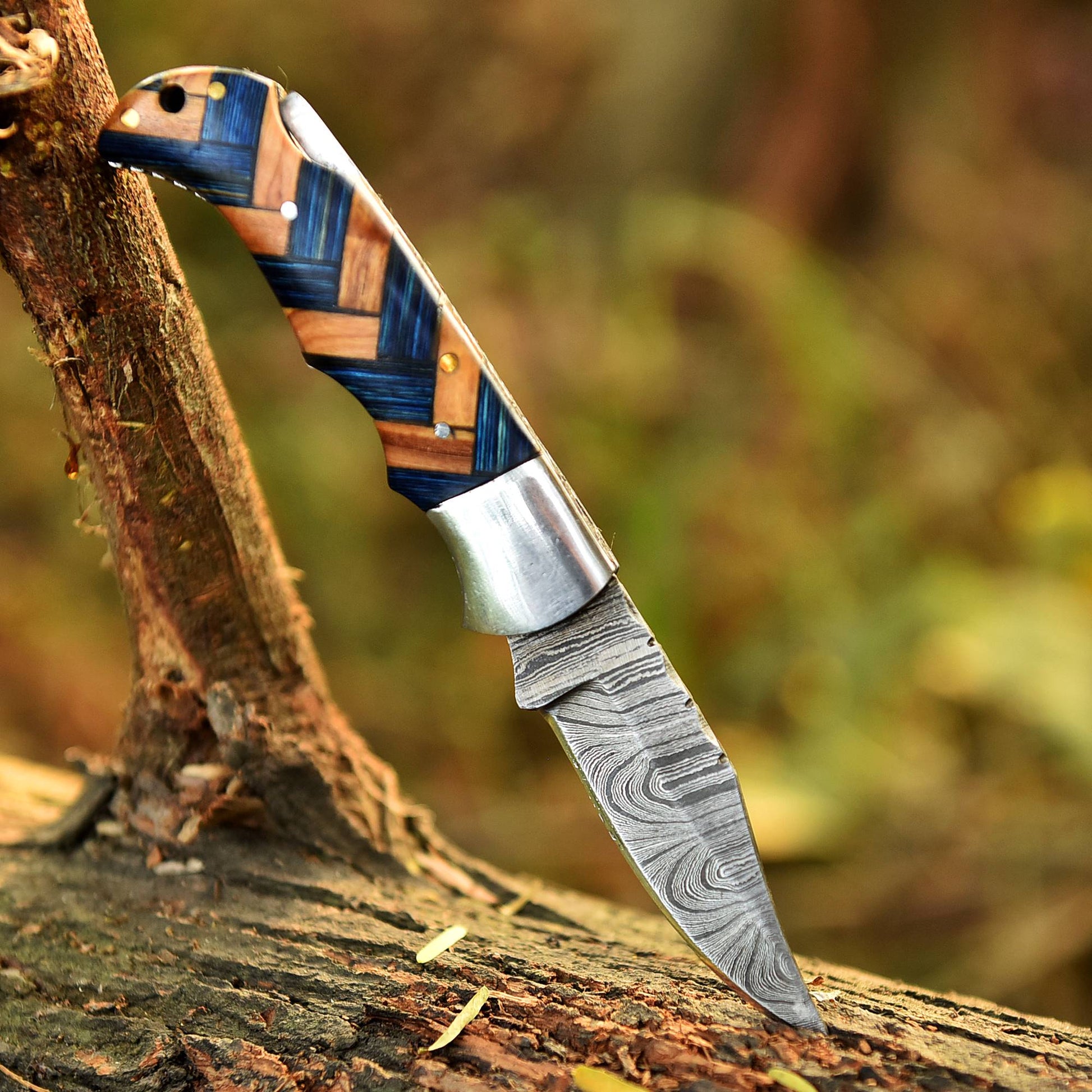 This custom folding knife is carefully hand forged from high-quality Damascus steel, known for its strength, durability, and distinctive flowing patterns. Each blade carries a unique layered design, making every knife a one-of-a-kind piece of craftsmanship.