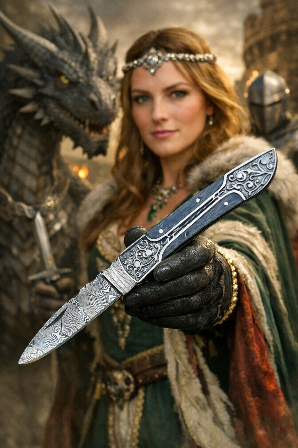 All of our knives are 100% hand crafted. True quality material used to form the blade. The handle materials, blade steels, and leather sheaths are made professionally with no expense spared. Great handle fitting, exception sharp edge, nicely balanced grasp.