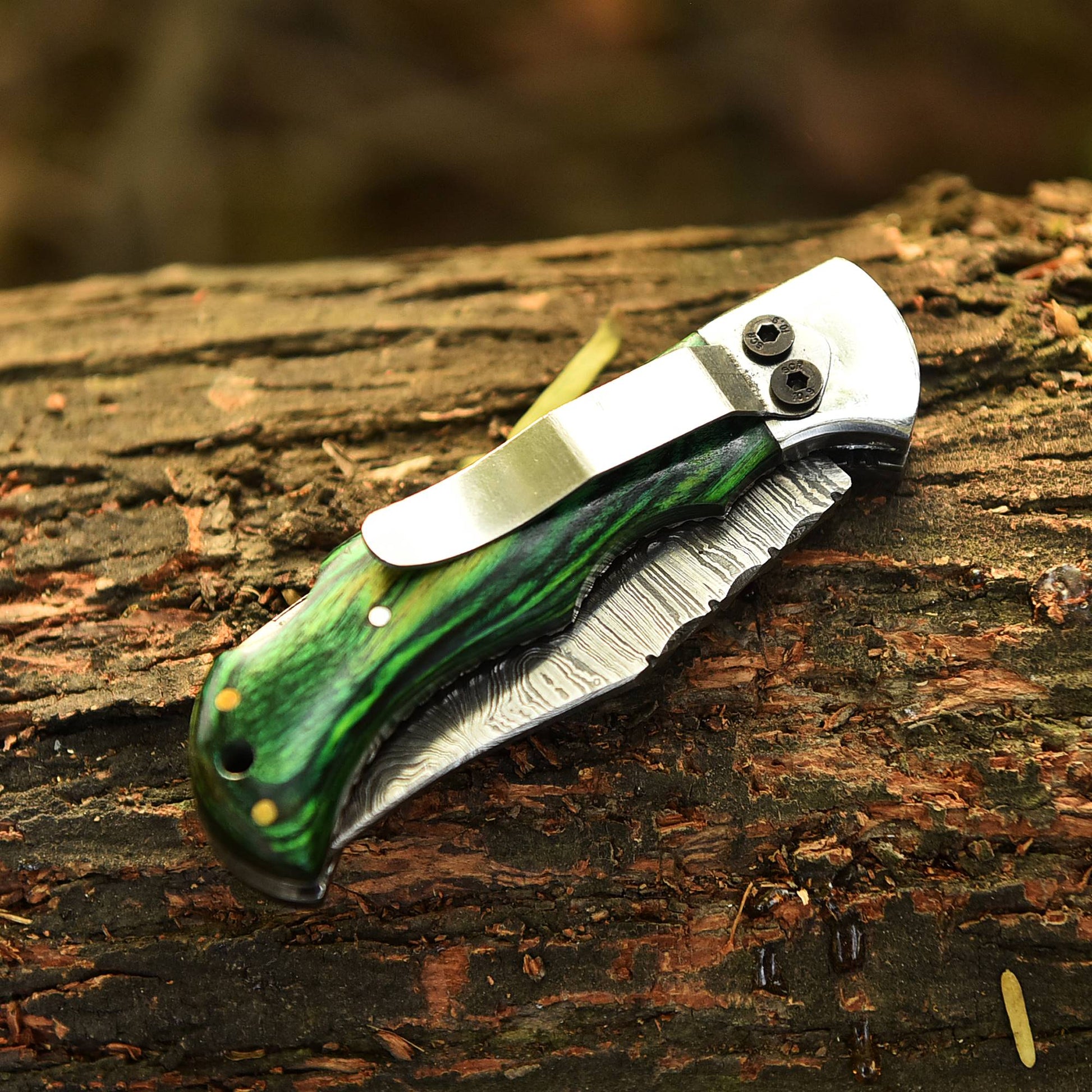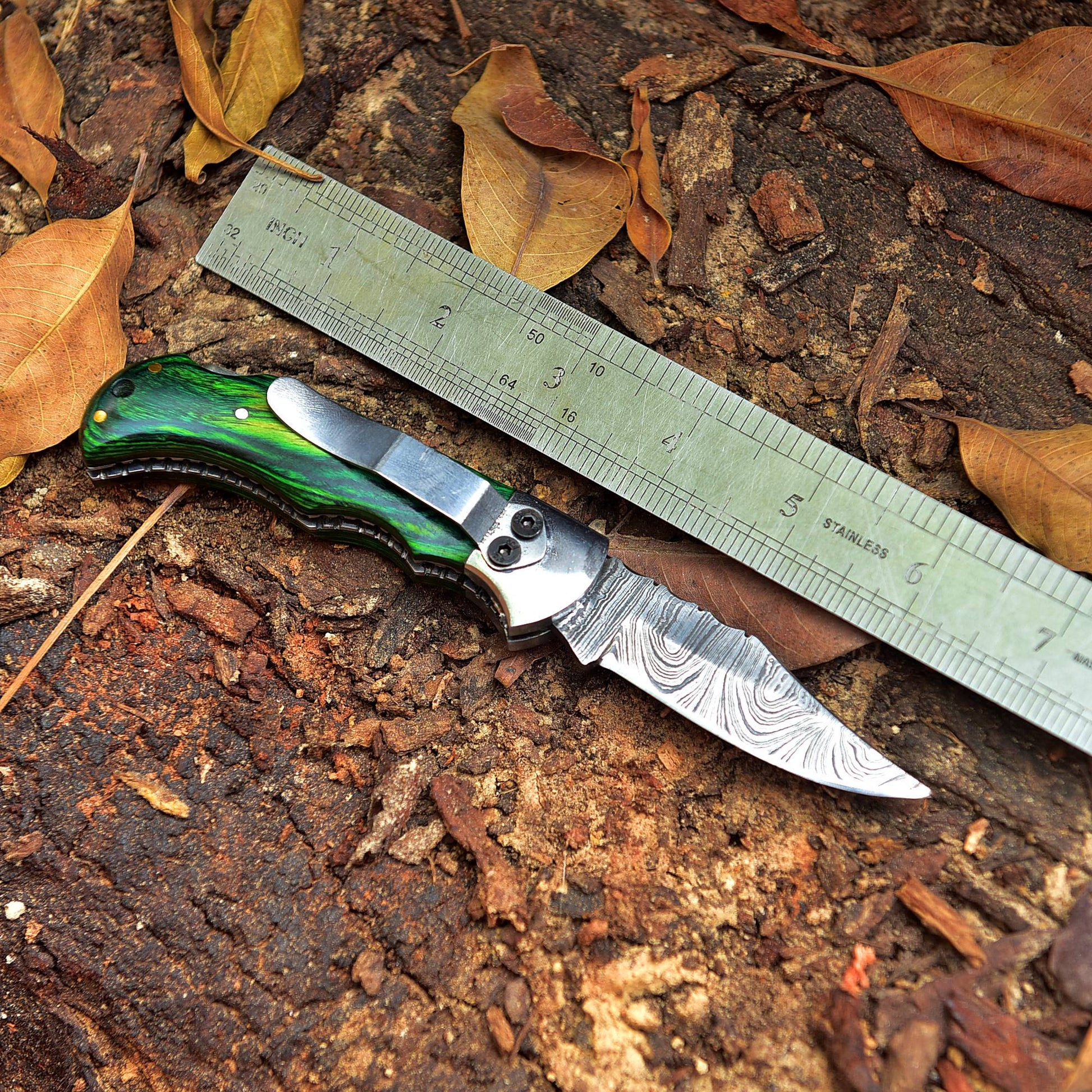 Handmade Damascus Steel Outdoor Hunting Folding Pocket Knife Wood Handle