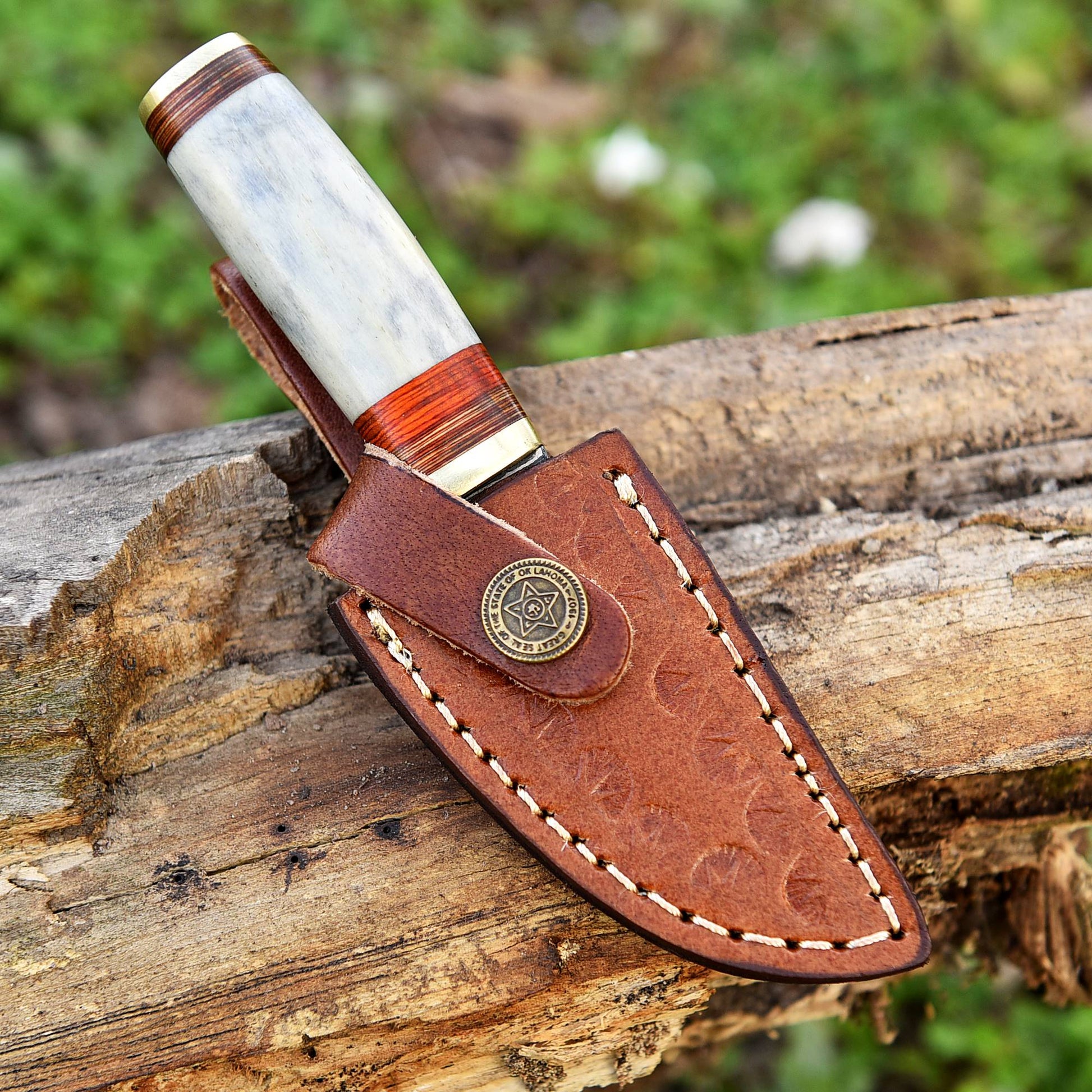 Handmade damascus steel skinner knife - camel bone handle - 5.5" full tang damascus knife x-748