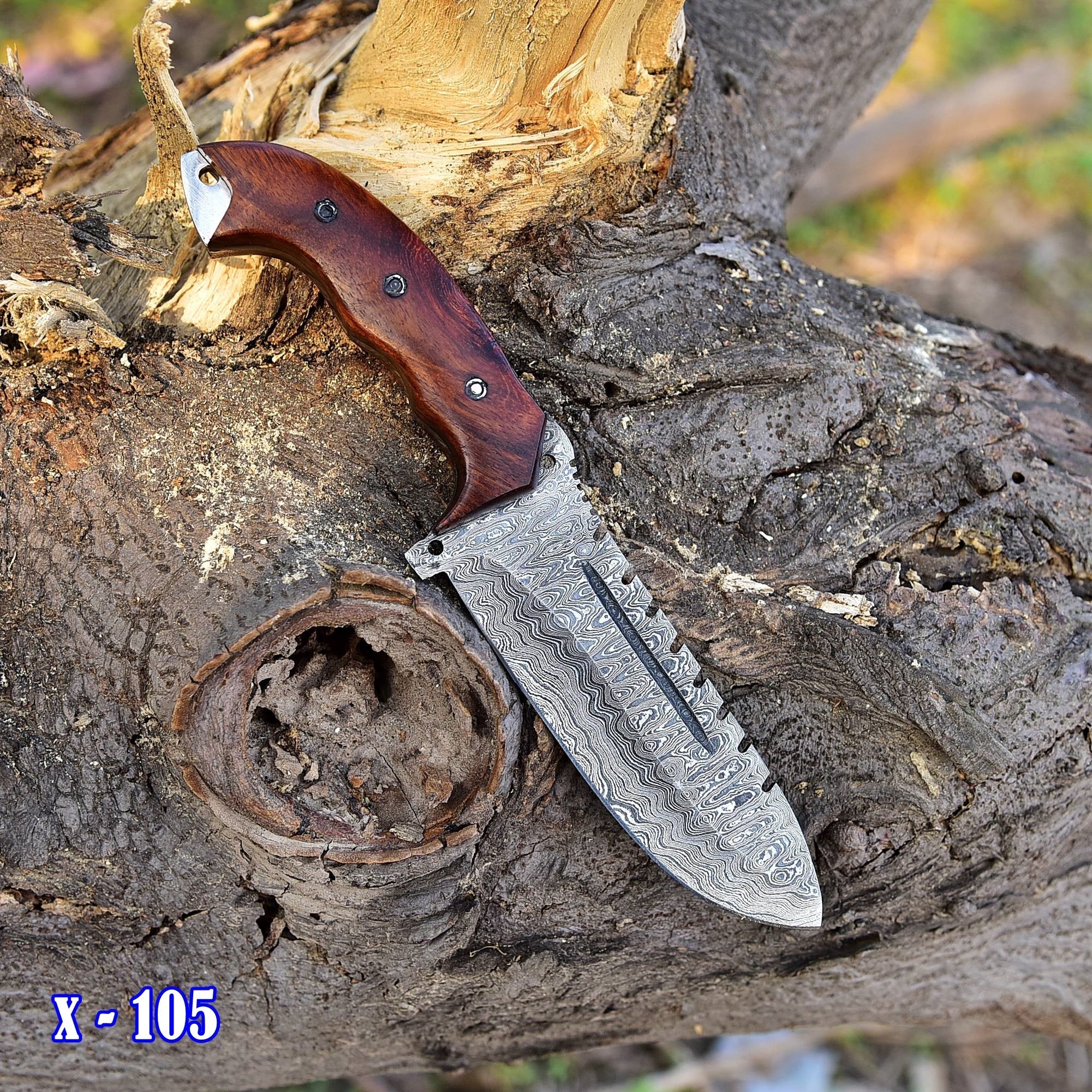 10 " damascus knife ideal outdoor hunting camping bushcraft with leather sheath x-193