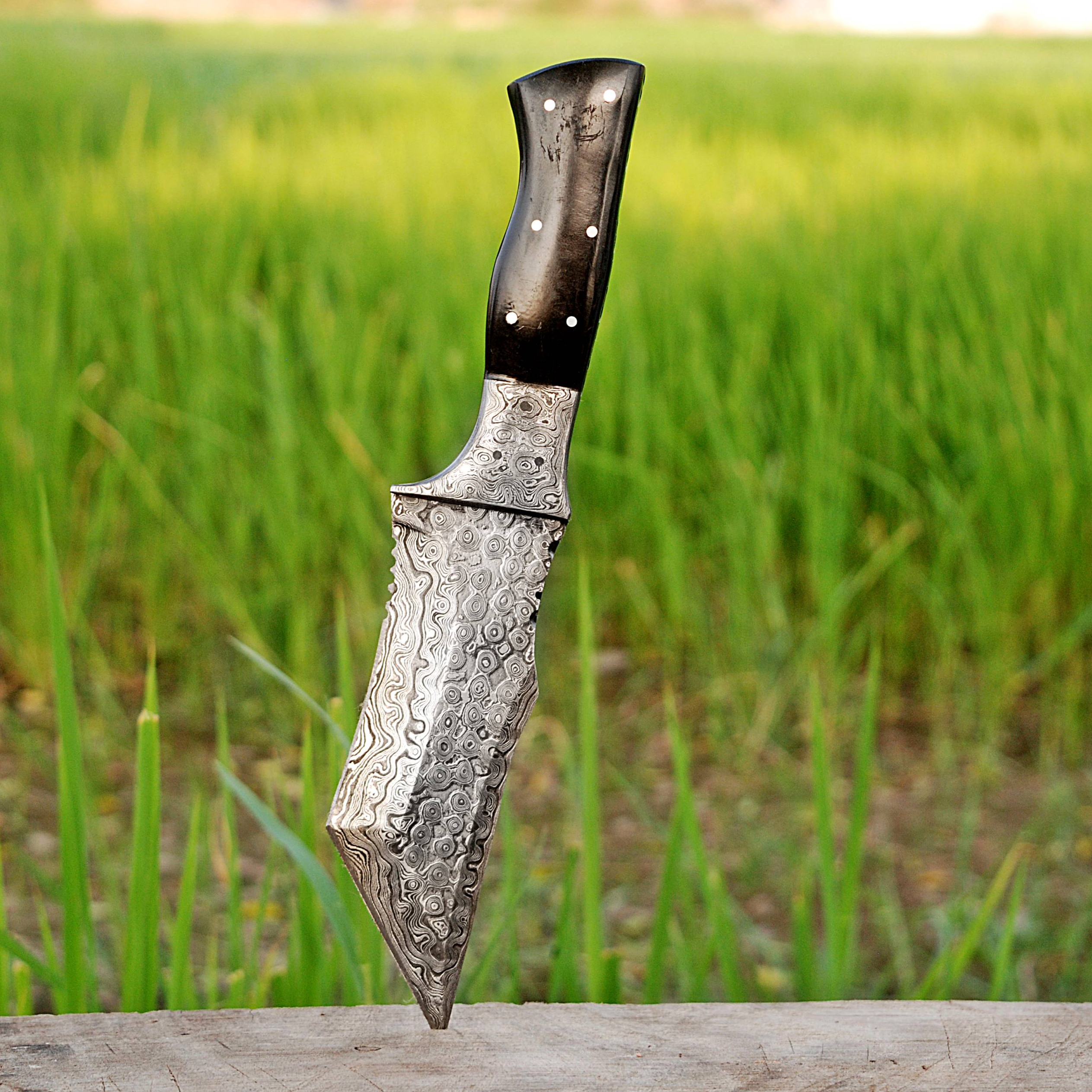 10" skinner knife fulltang forged damascus twist pattern hunting knives bone handle