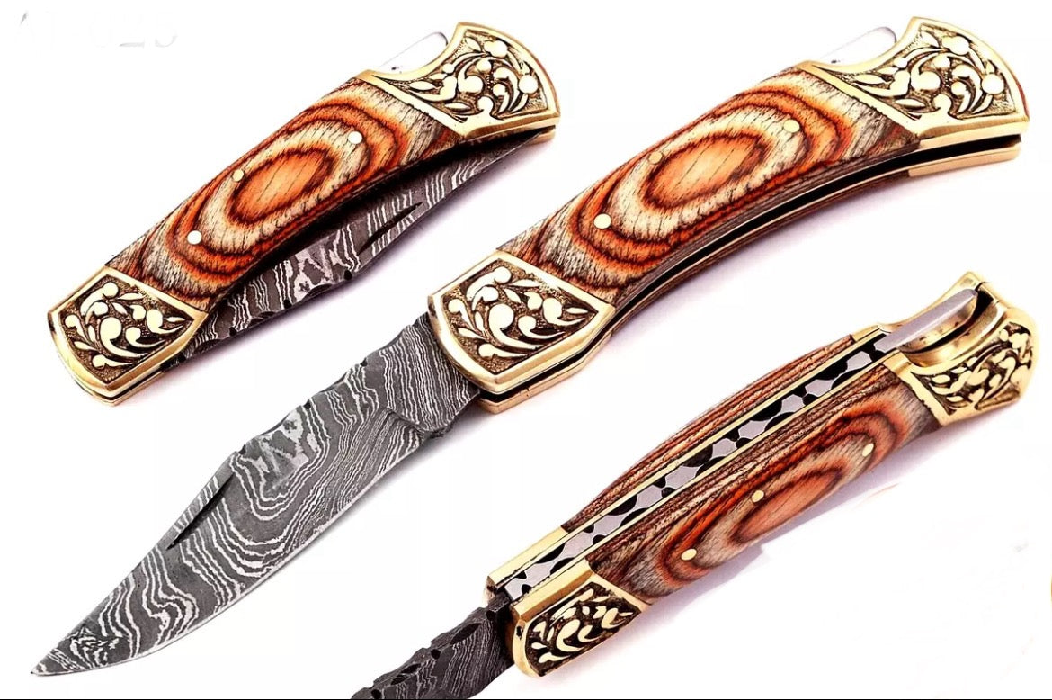 Damascus folding blade knife - 7" handmade gift knife - tactical pocket knife