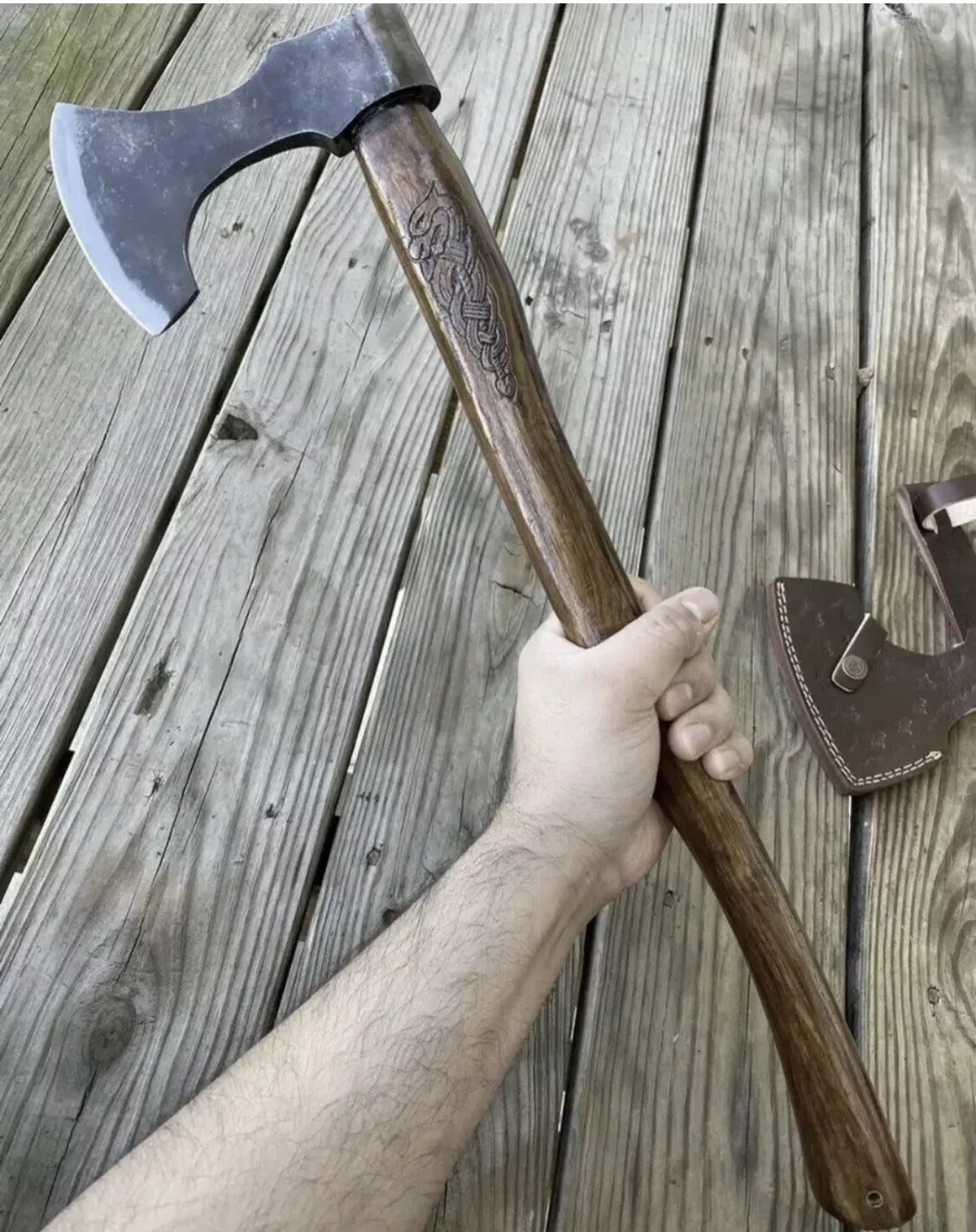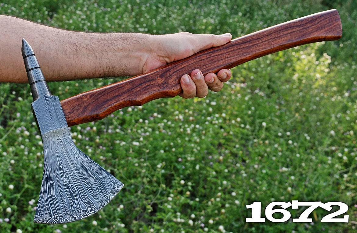 Full tang forged carbon steel axe with rose wood shaft - viking axe -x177